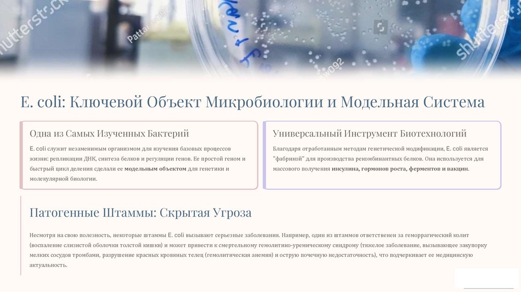 E. coli: Ключевой Объект Микробиологии и Модельная СистемаОдна из Самых Изученных Бактерий