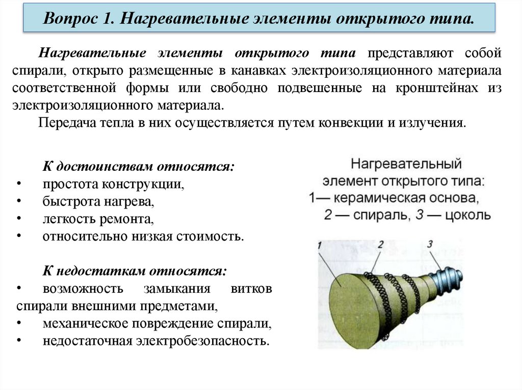 Вопрос 1. Нагревательные элементы открытого типа.Нагревательные элементы открытого типа представляют собой