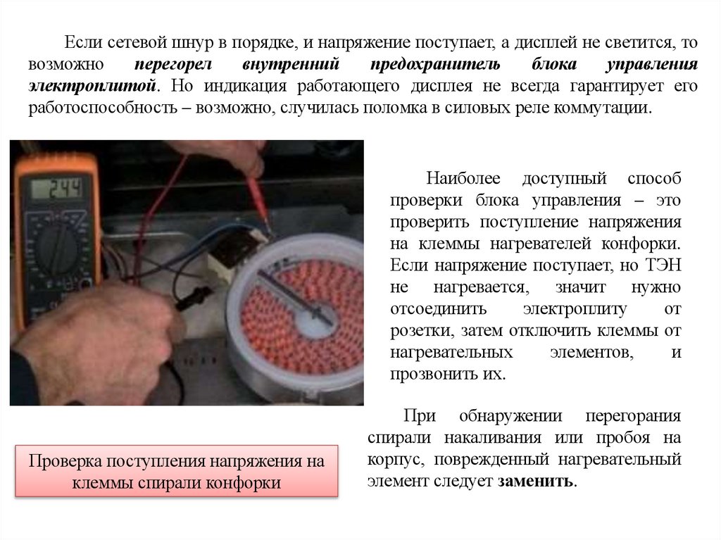 электроплитой. Но индикация работающего дисплея не всегда гарантирует его