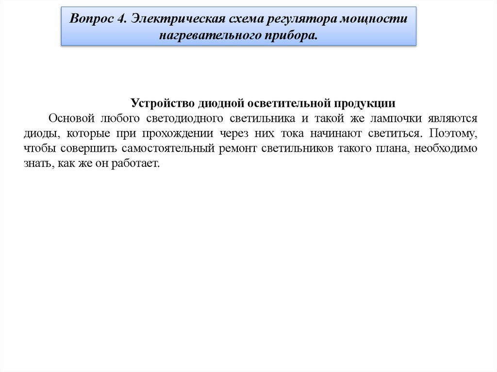 Вопрос 4. Электрическая схема регулятора мощностинагревательного прибора.