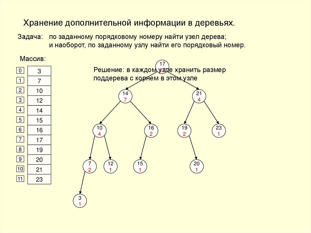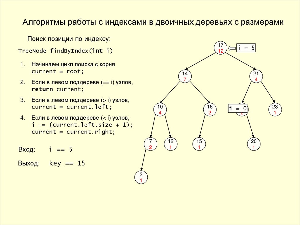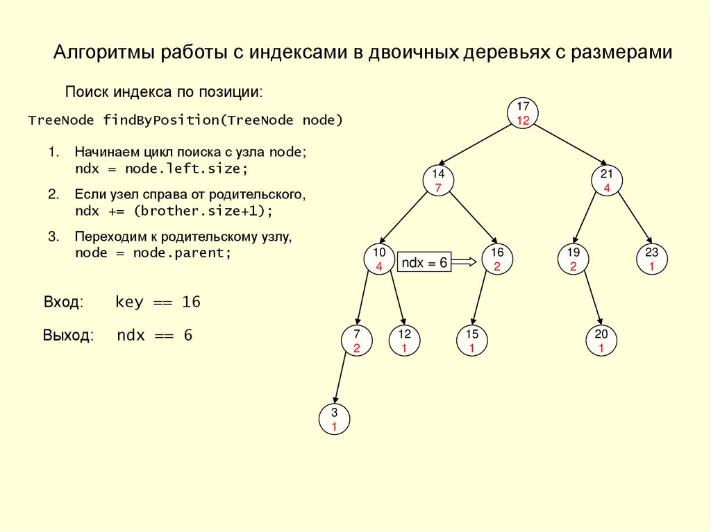 Алгоритмы работы с индексами в двоичных деревьях с размерамиПоиск индекса по позиции: