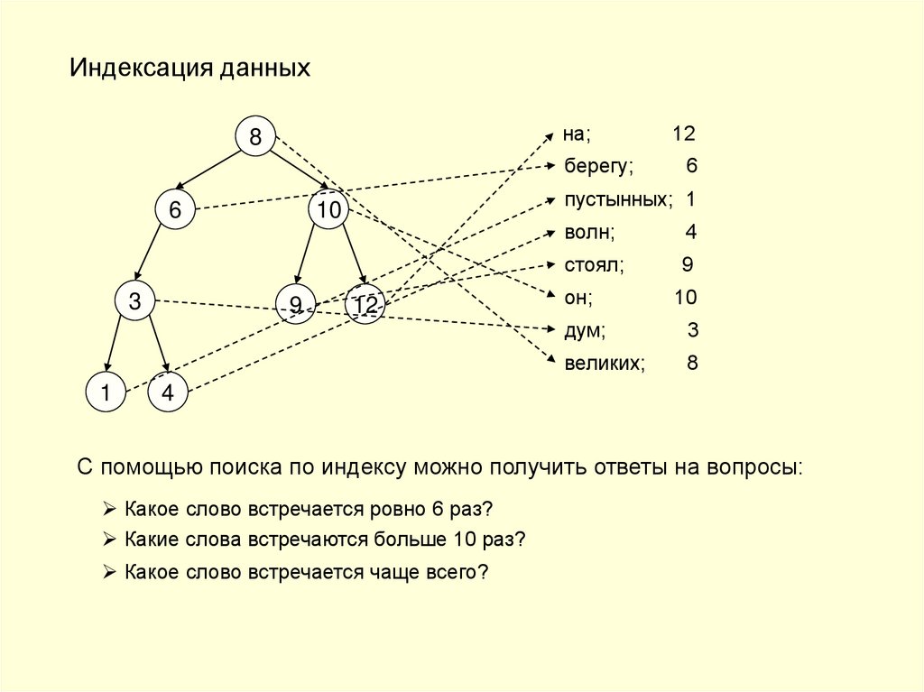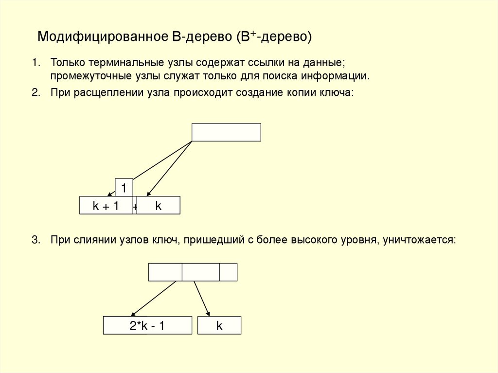 Модифицированное В-дерево (В+-дерево)1. Только терминальные узлы содержат ссылки на данные;