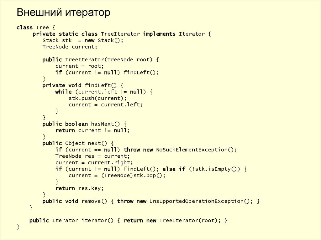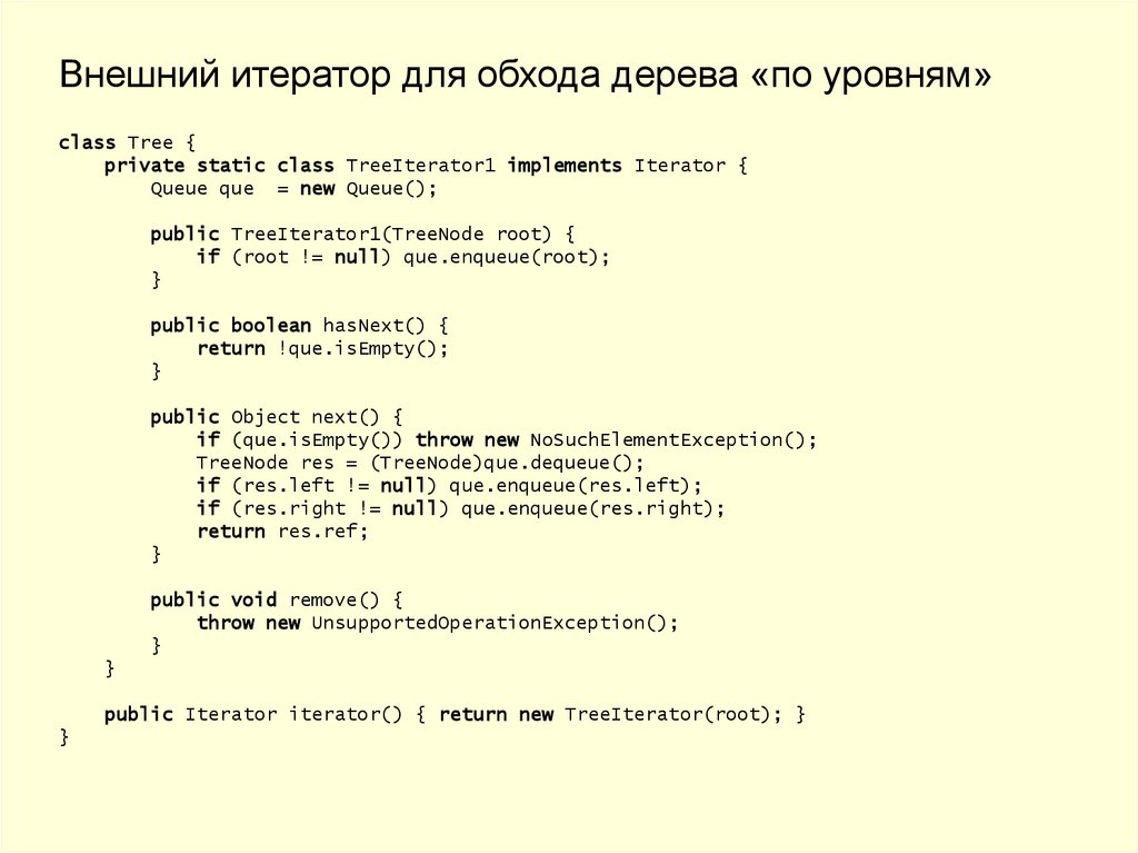 Внешний итератор для обхода дерева «по уровням»class Tree {