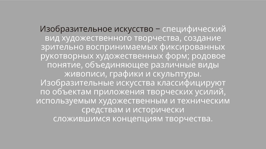 Изобразительное искусство – специфическийвид художественного творчества, создание