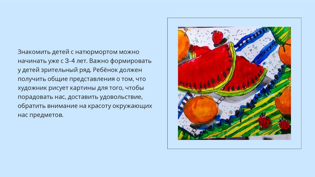 Знакомить детей с натюрмортом можноначинать уже с 3-4 лет. Важно формировать