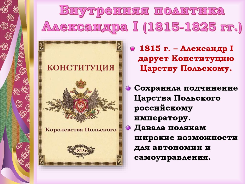 3 Внутренняя политика Александра I 1815 - 1825 гг