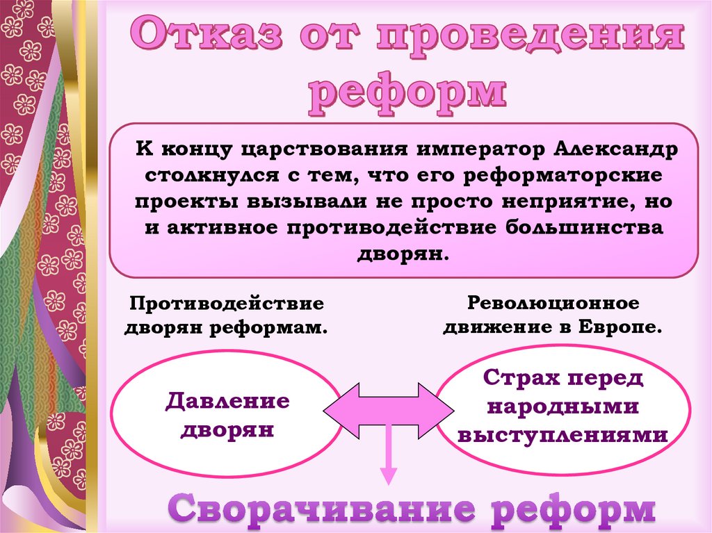 К концу царствования император Александрстолкнулся с тем, что его реформаторские