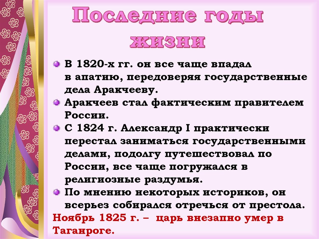 В 1820-х гг. он все чаще впадалв апатию, передоверяя государственные