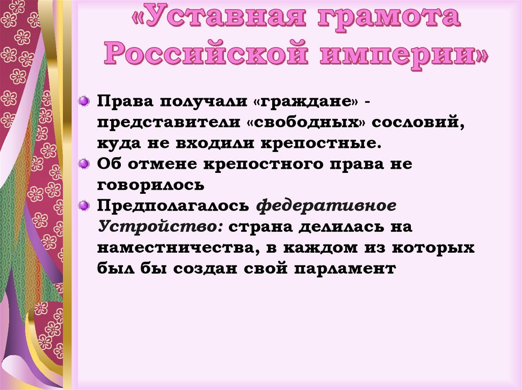 Права получали «граждане» представители «свободных» сословий,куда не входили крепостные.