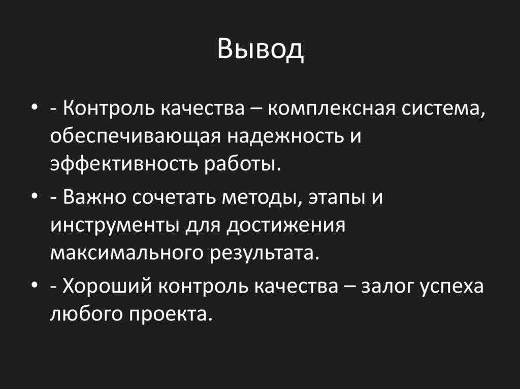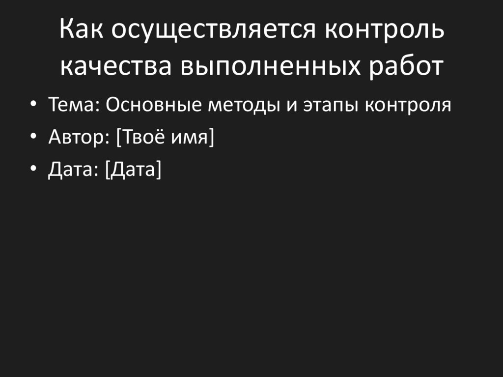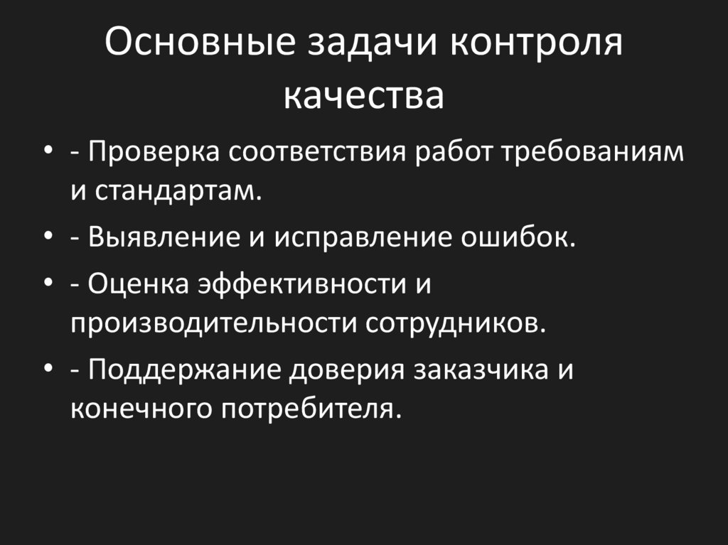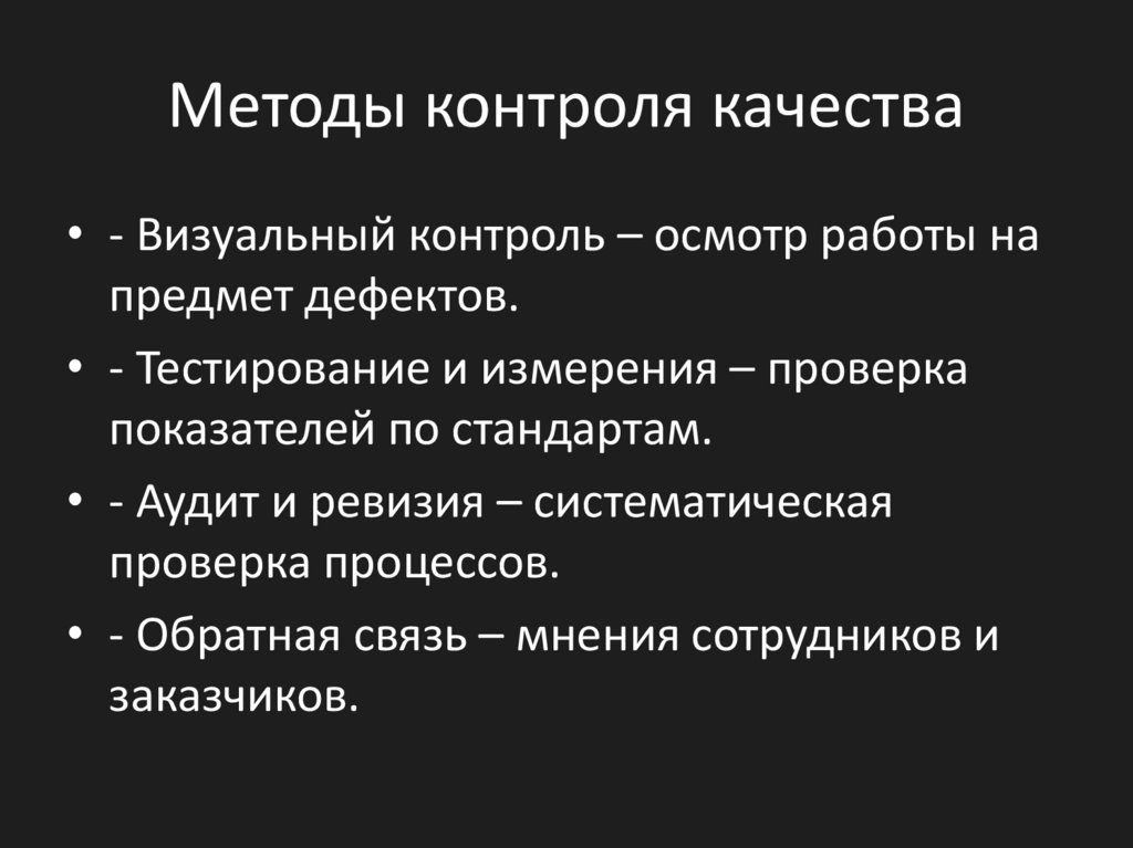 Методы контроля качества• - Визуальный контроль – осмотр работы на