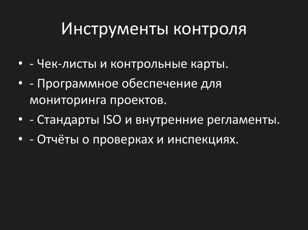Инструменты контроля• - Чек-листы и контрольные карты.
