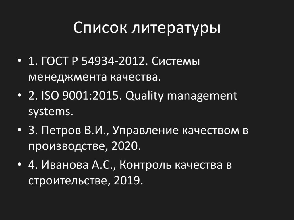Список литературы• 1. ГОСТ Р 54934-2012. Системы