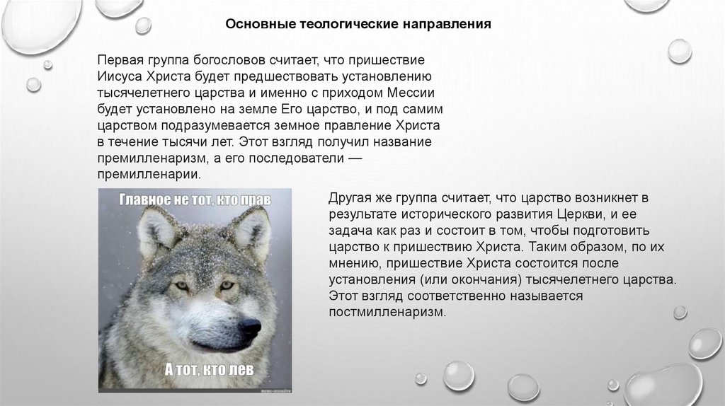 Основные теологические направленияПервая группа богословов считает, что пришествие