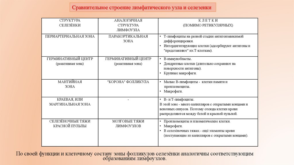 По своей функции и клеточному составу зоны фолликулов селезёнки аналогичны соответствующим