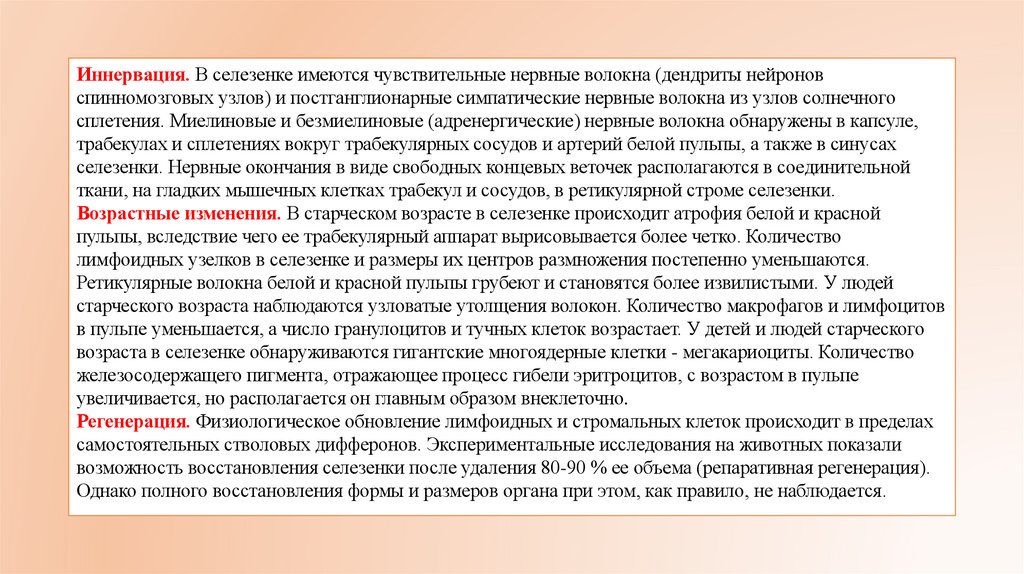 Возрастные изменения. В старческом возрасте в селезенке происходит атрофия белой и красной