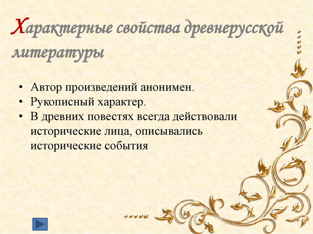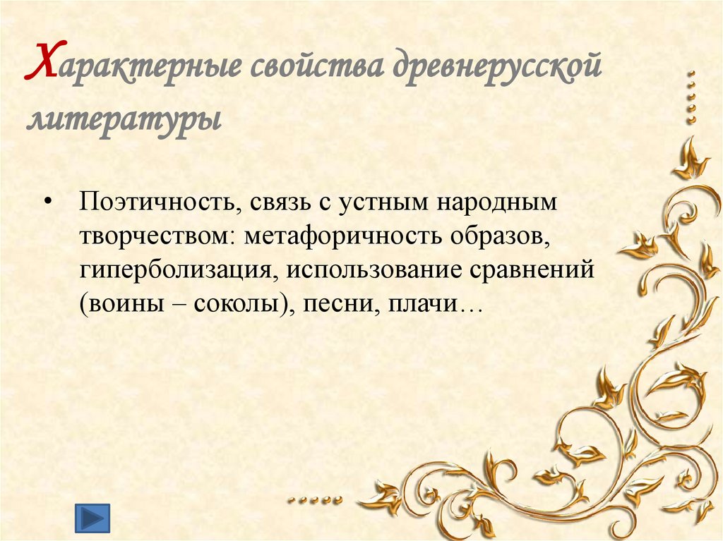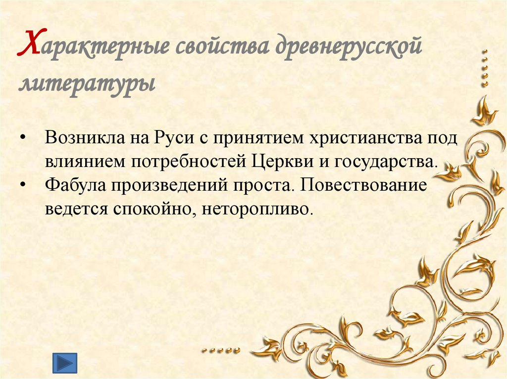 Характерные свойства древнерусскойлитературы