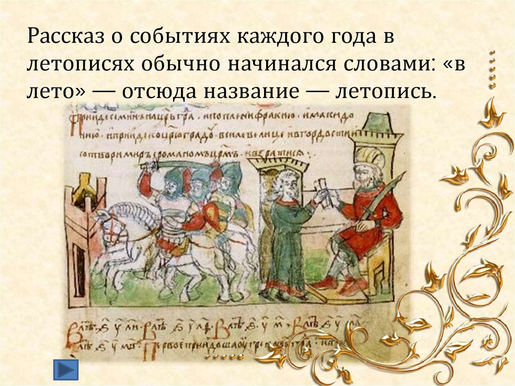 Рассказ о событиях каждого года влетописях обычно начинался словами: «в