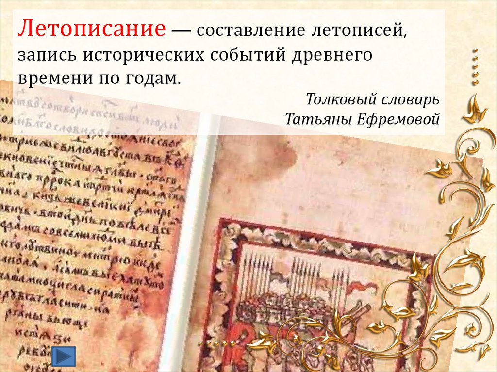 Летописание — составление летописей,запись исторических событий древнего