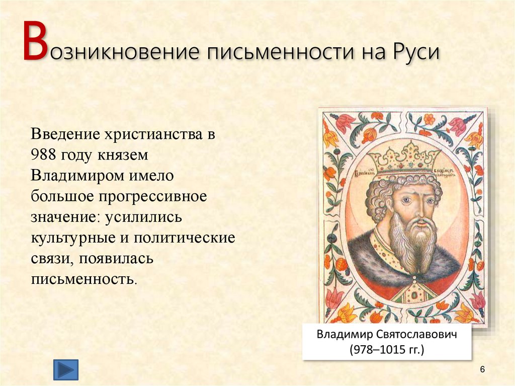 Возникновение письменности на РусиВведение христианства в