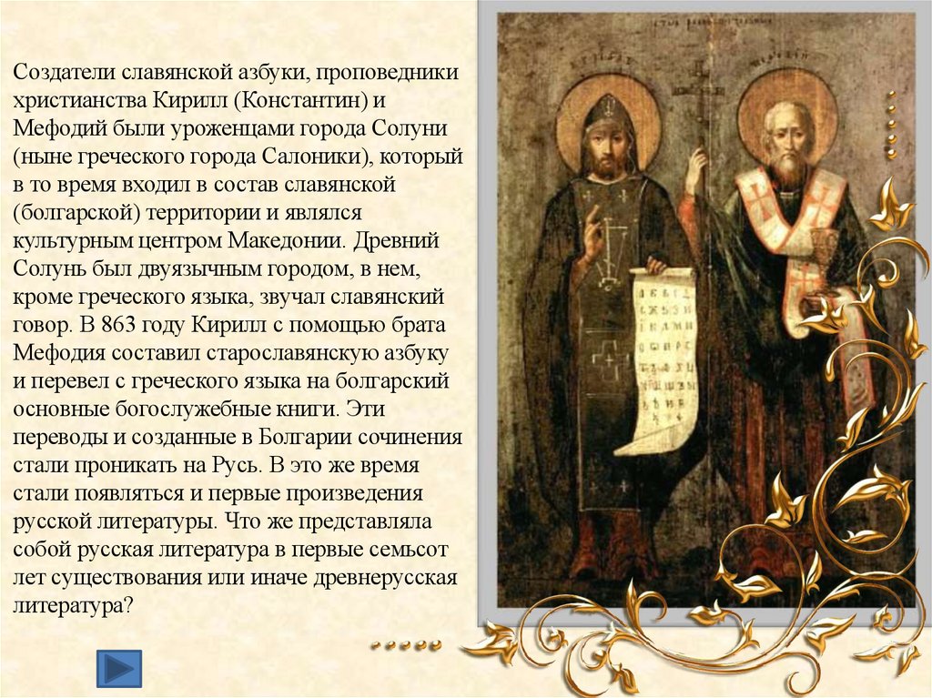 Создатели славянской азбуки, проповедникихристианства Кирилл (Константин) и