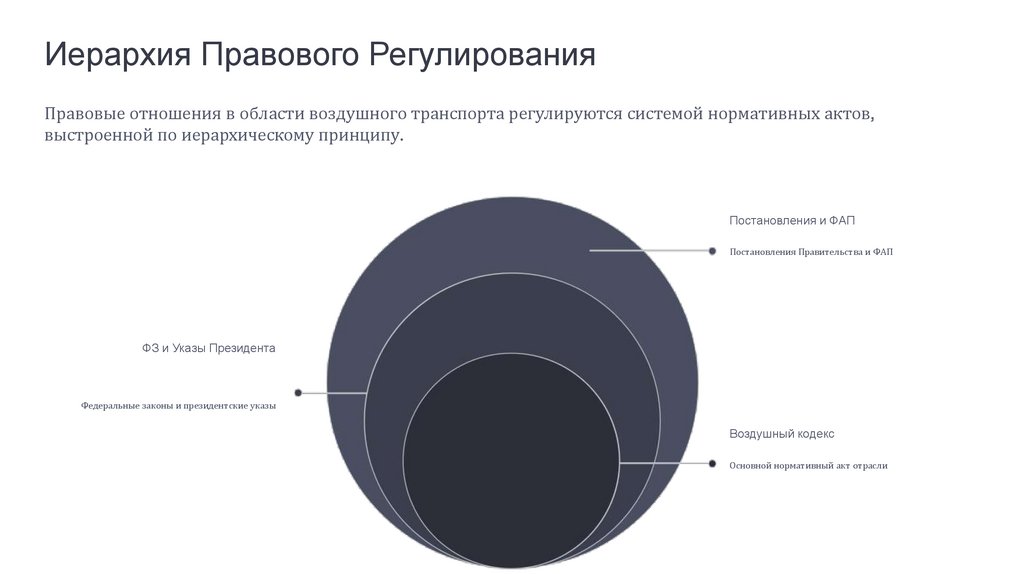 Иерархия Правового РегулированияПравовые отношения в области воздушного транспорта регулируются системой нормативных актов,