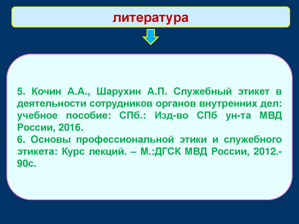 литература5. Кочин А.А., Шарухин А.П. Служебный этикет в