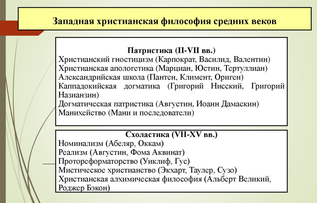 техницизм; Неотомизм; Религиозномистический синкретизм.