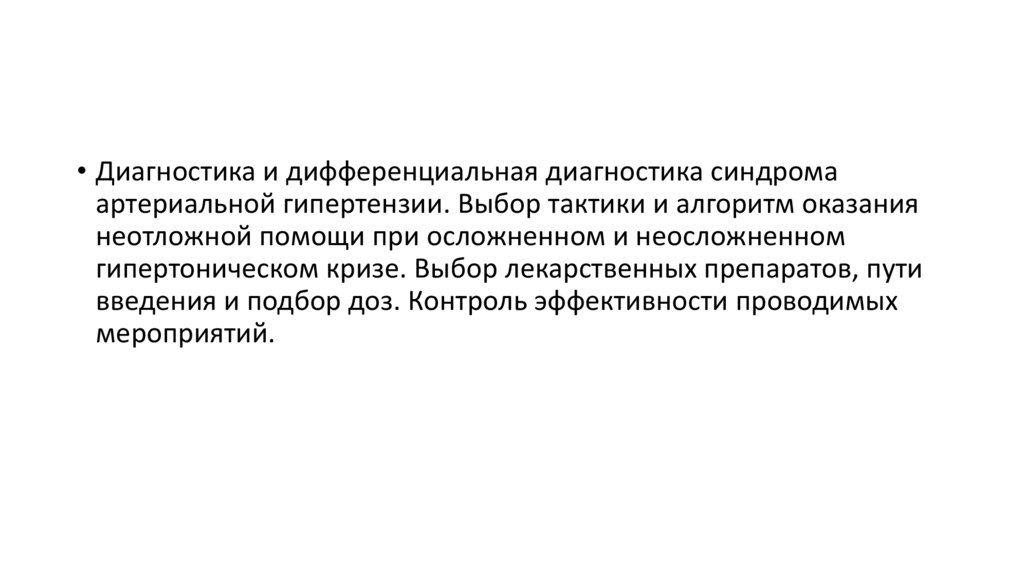 • Диагностика и дифференциальная диагностика синдромаартериальной гипертензии. Выбор тактики и алгоритм оказания