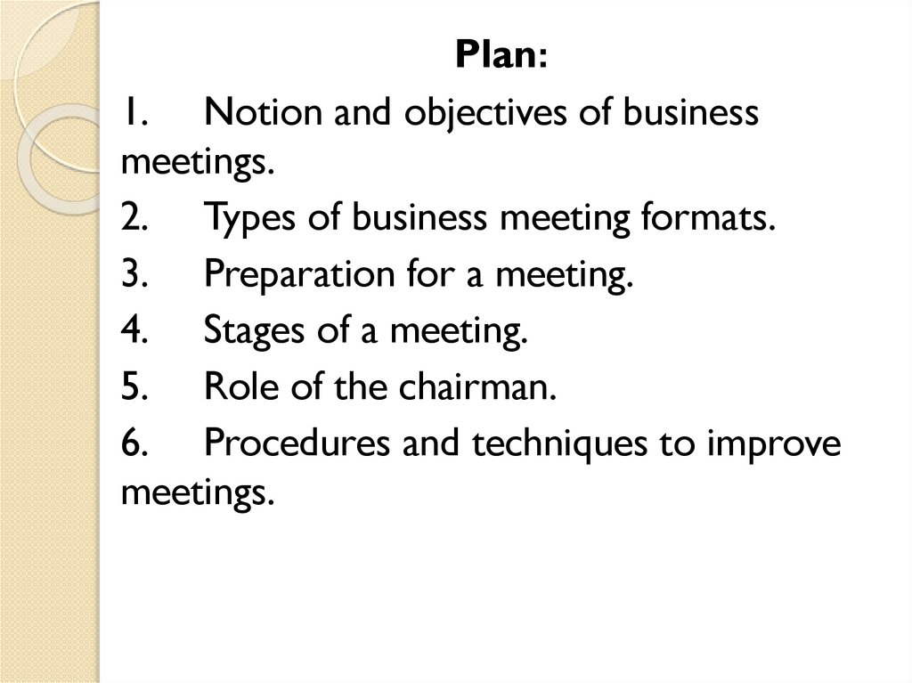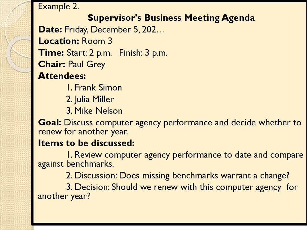 9. (1) Agenda (повестка дня) is a list of items to be discussed at the meeting: