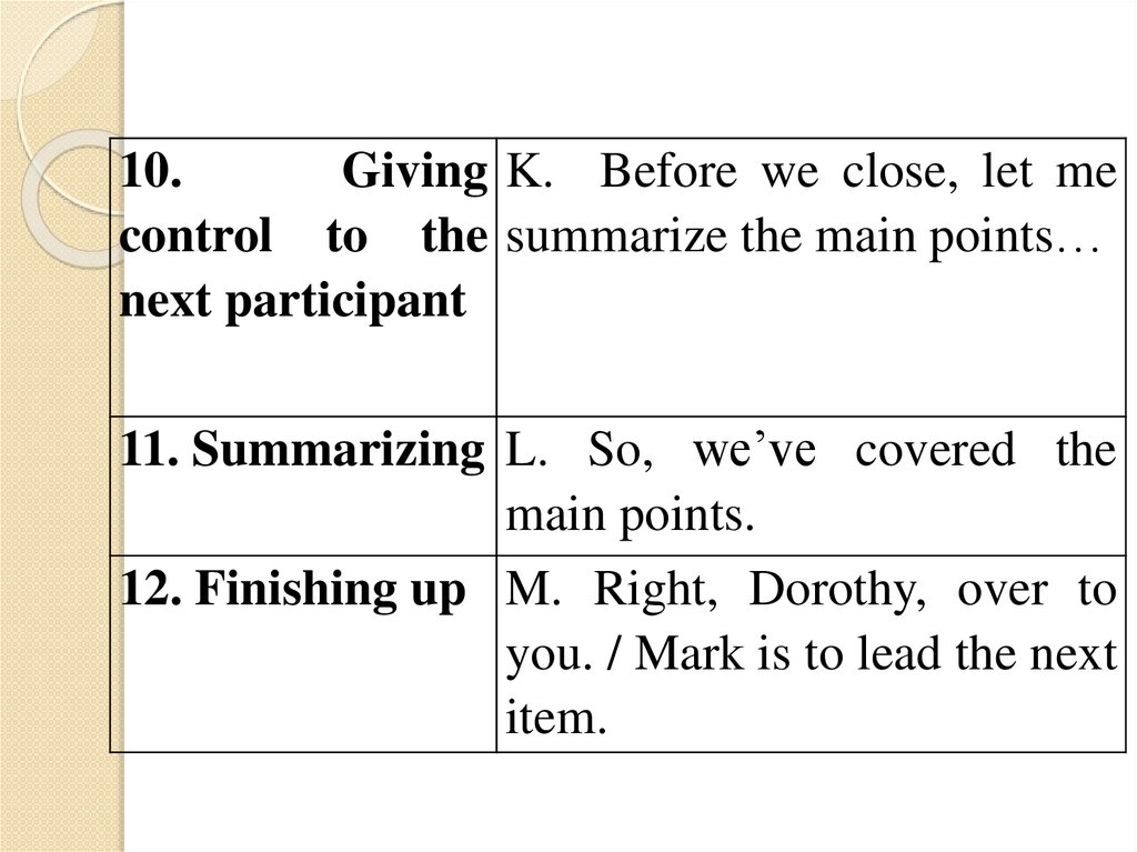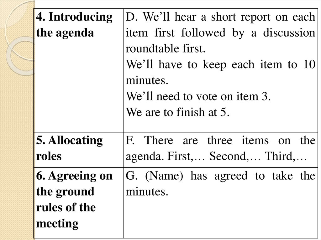 Exercise 1. Match the functions of a chairperson and phrases heis supposed to say in different situations to know how to comply