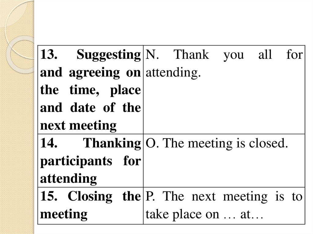 13. Suggesting N. Thank you all forand agreeing on attending.
