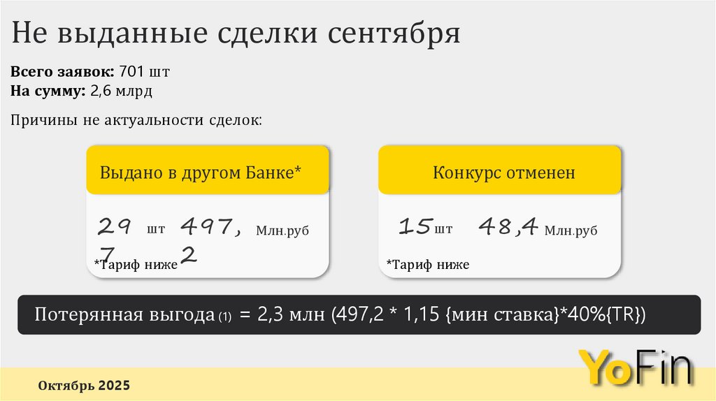 Не выданные сделки сентябряВсего заявок: 701 шт