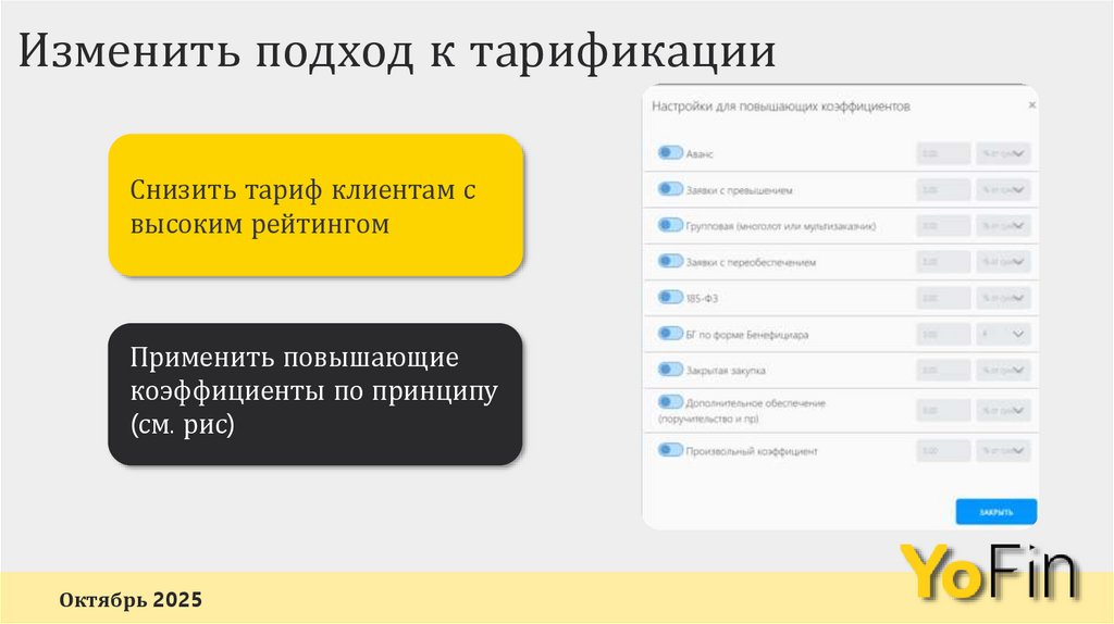 Изменить подход к тарификацииСнизить тариф клиентам с
