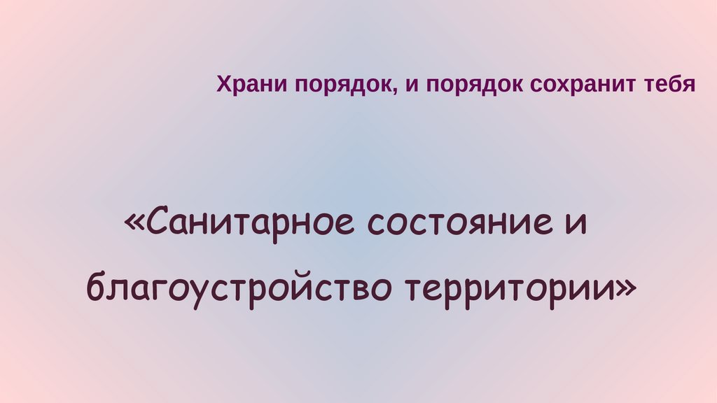 Храни порядок, и порядок сохранит тебя«Санитарное состояние и