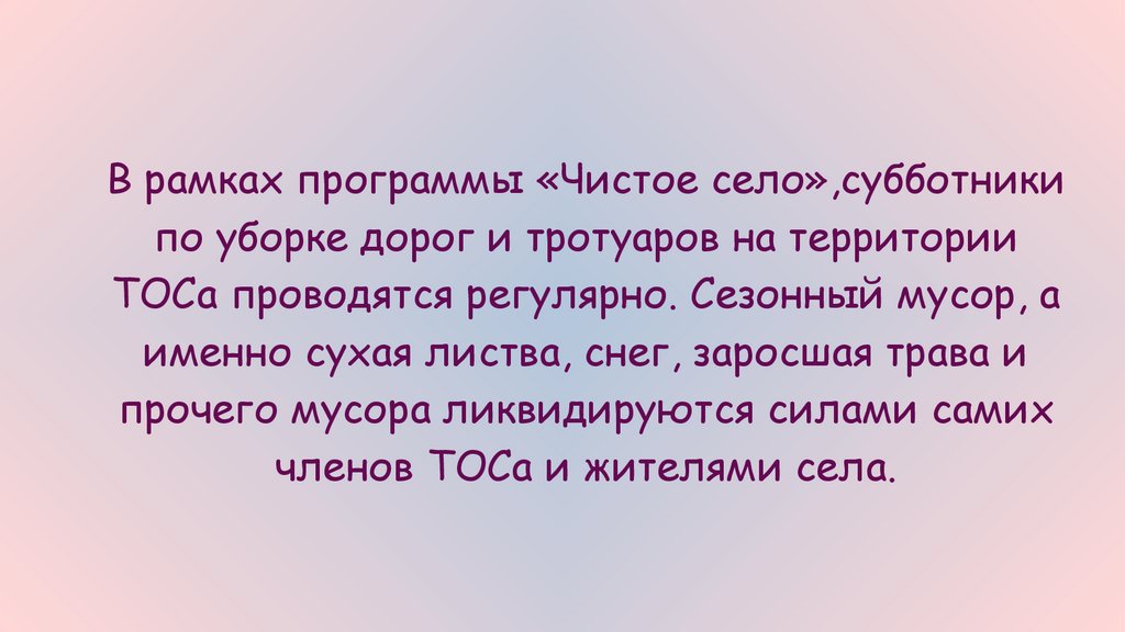 ТОСа проводятся регулярно. Сезонный мусор, а