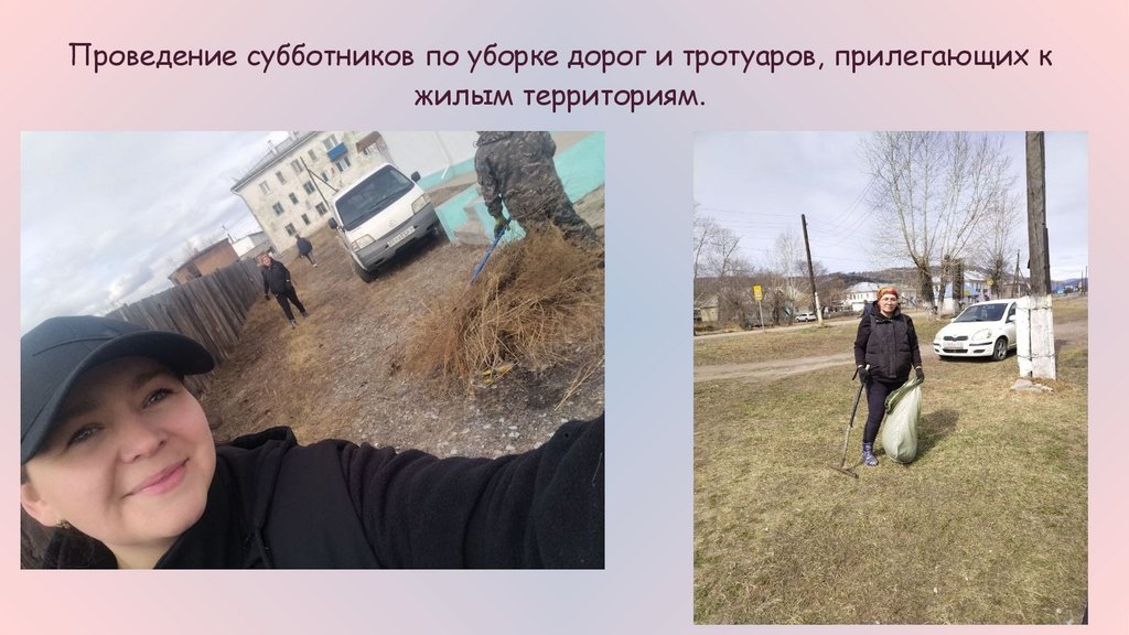 Проведение субботников по уборке дорог и тротуаров, прилегающих кжилым территориям.