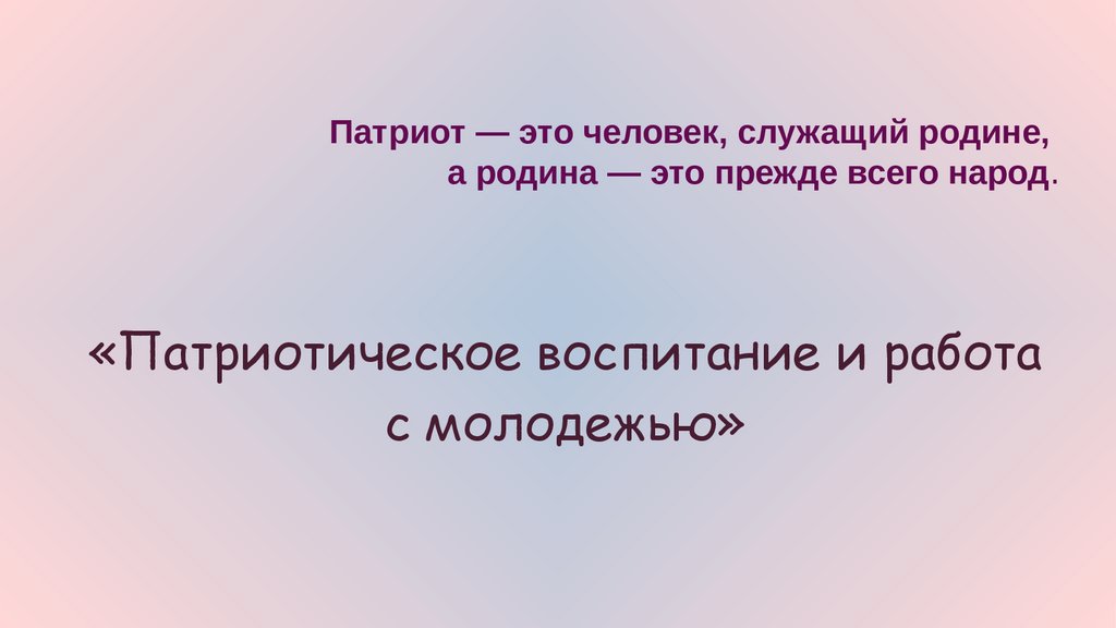 Патриот — это человек, служащий родине,а родина — это прежде всего народ.