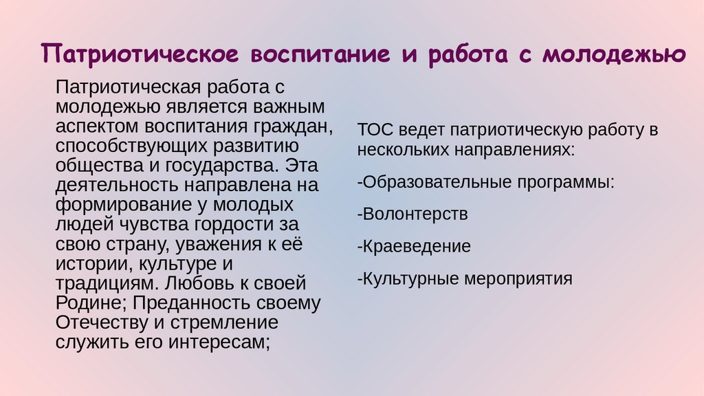 Патриотическое воспитание и работа с молодежьюПатриотическая работа с