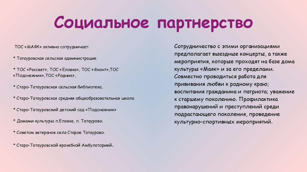 Социальное партнерствоТОС «МАЯК» активно сотрудничает: