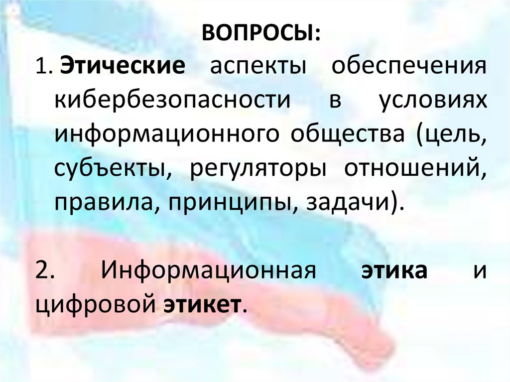 ВОПРОСЫ:1. Этические аспекты обеспечения