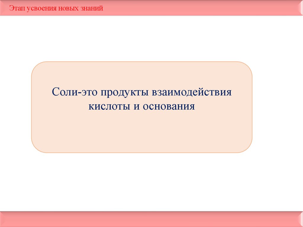 Этап усвоения новых знанийСоли-это продукты взаимодействия