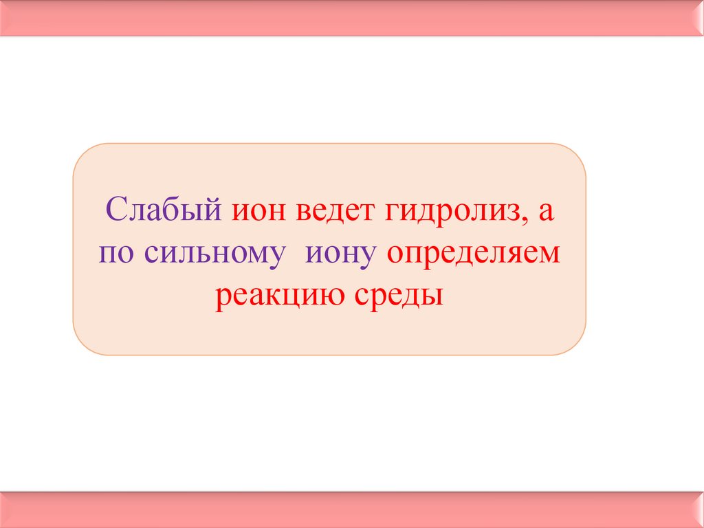 Слабый ион ведет гидролиз, апо сильному иону определяем
