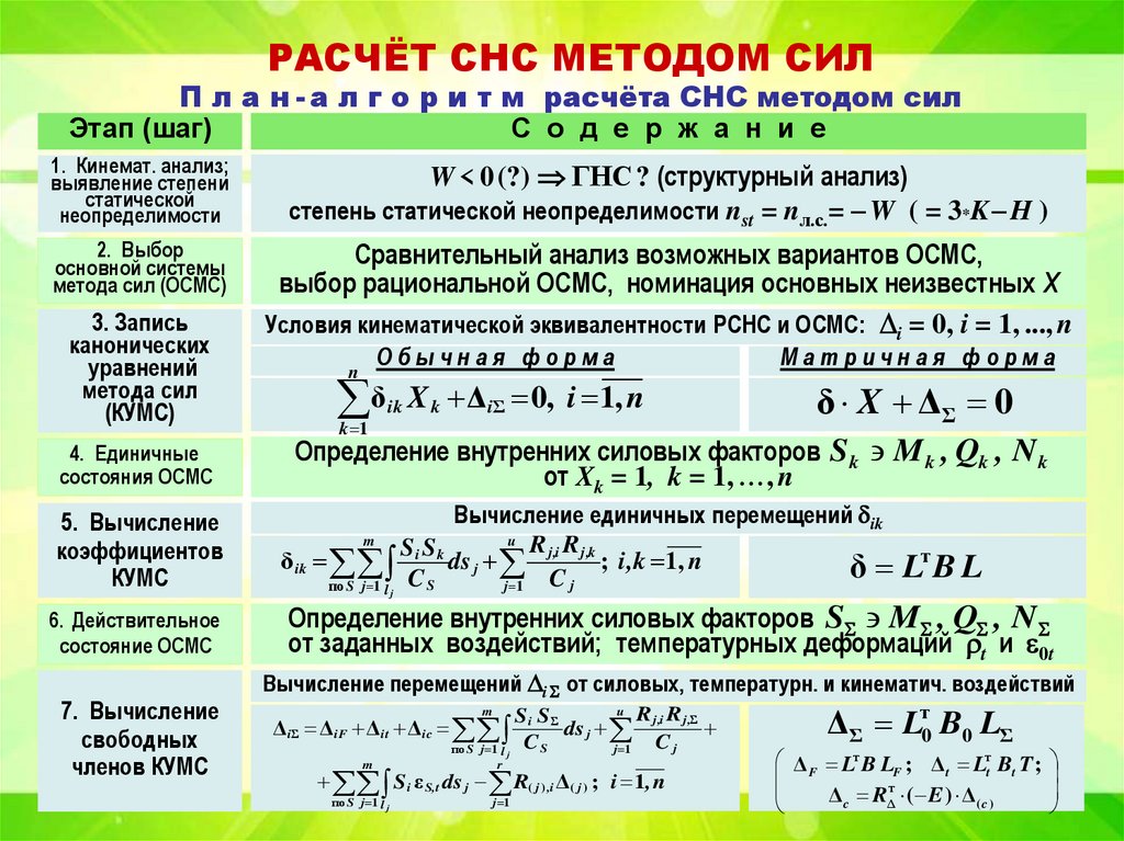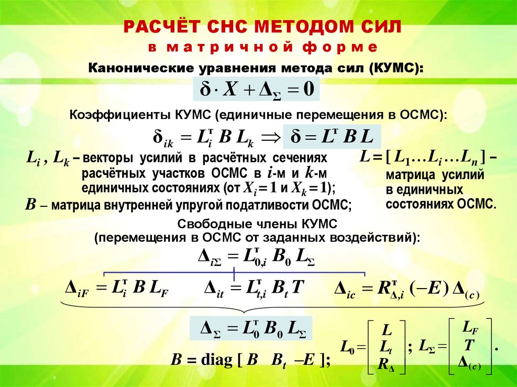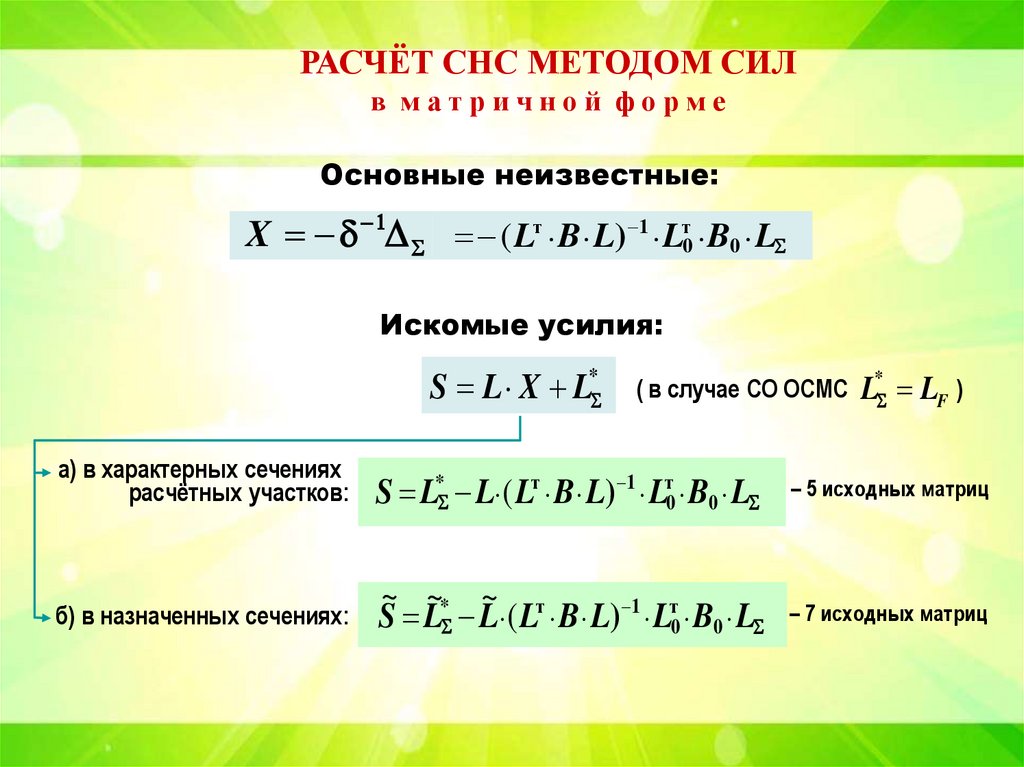 РАСЧЁТ СНС МЕТОДОМ СИЛв матричной форме