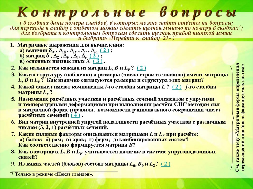 ( в скобках даны номера слайдов, в которых можно найти ответы на вопросы;