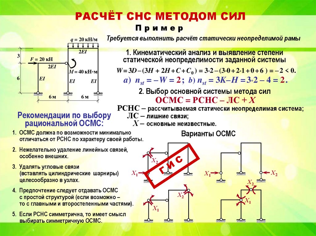 РАСЧЁТ СНС МЕТОДОМ СИЛПример
