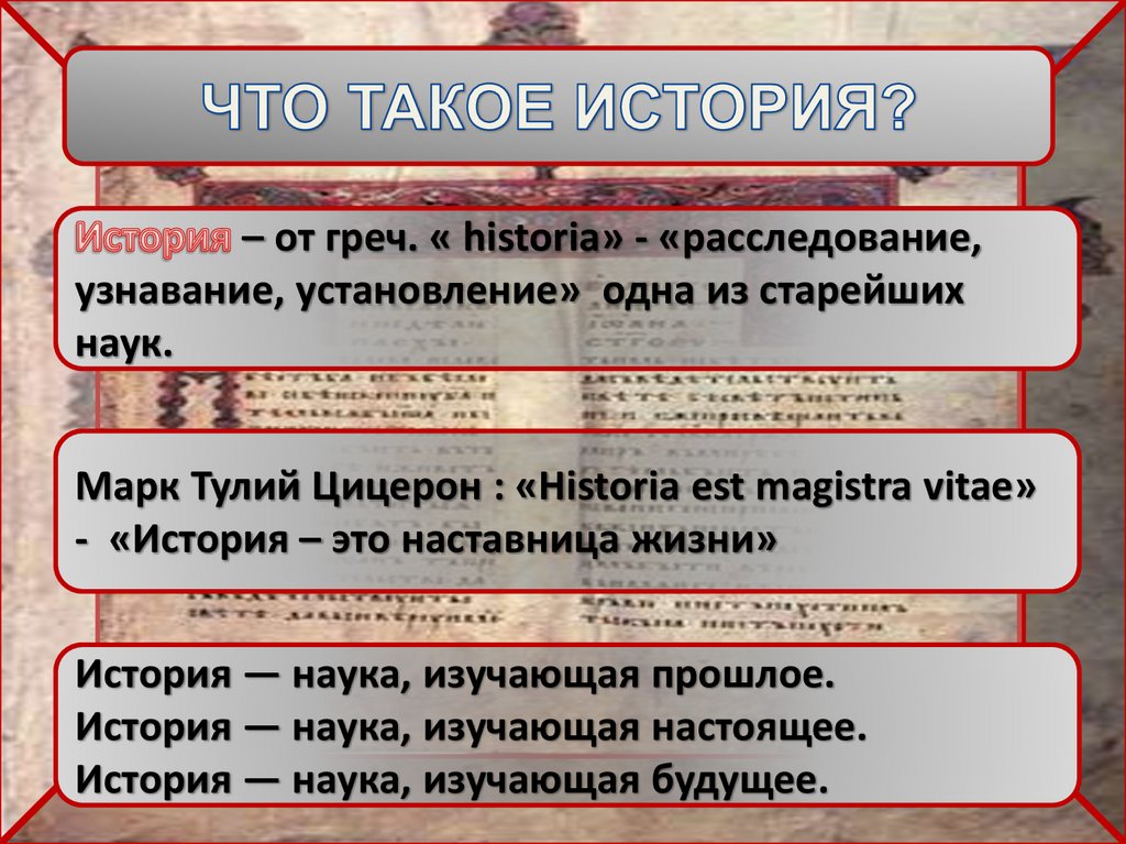 – от греч. « historia» - «расследование,узнавание, установление» одна из старейших
