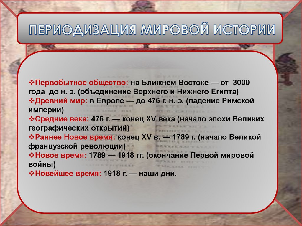 Древний мир: в Европе — до 476 г. н. э. (падение Римской
