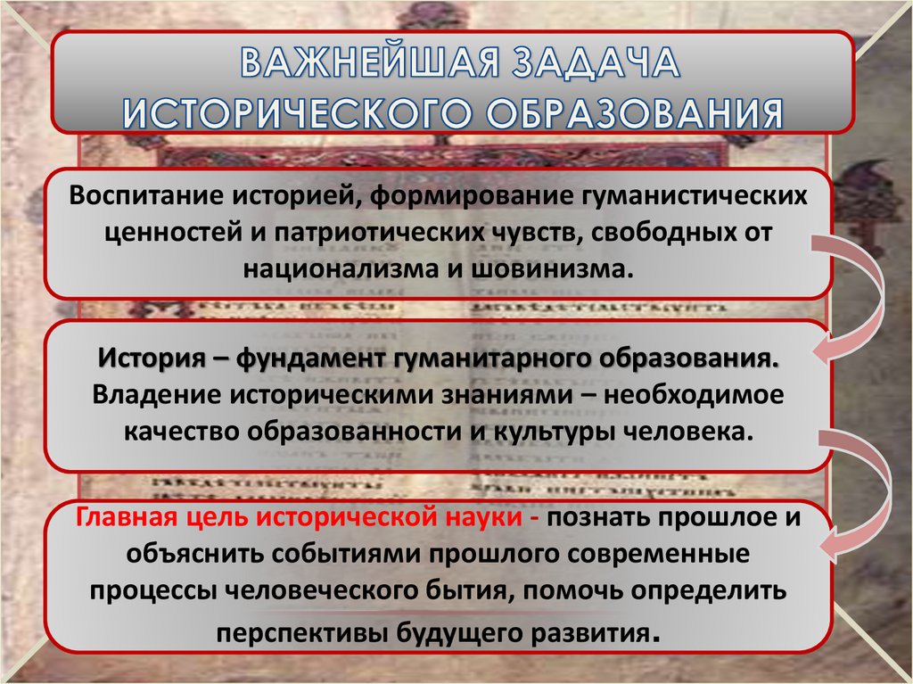 Воспитание историей, формирование гуманистическихценностей и патриотических чувств, свободных от