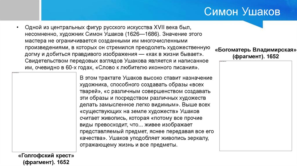 Симон УшаковОдной из центральных фигур русского искусства XVII века был,