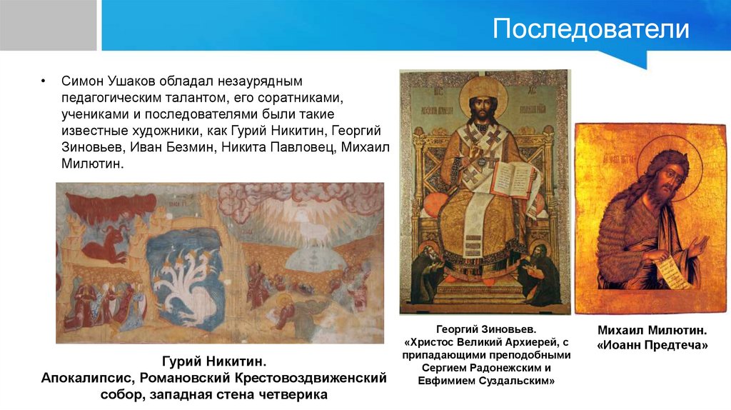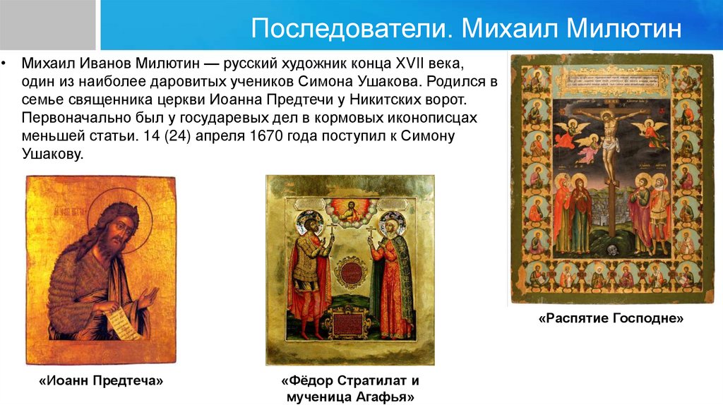 Последователи. Михаил Милютин• Михаил Иванов Милютин — русский художник конца XVII века,